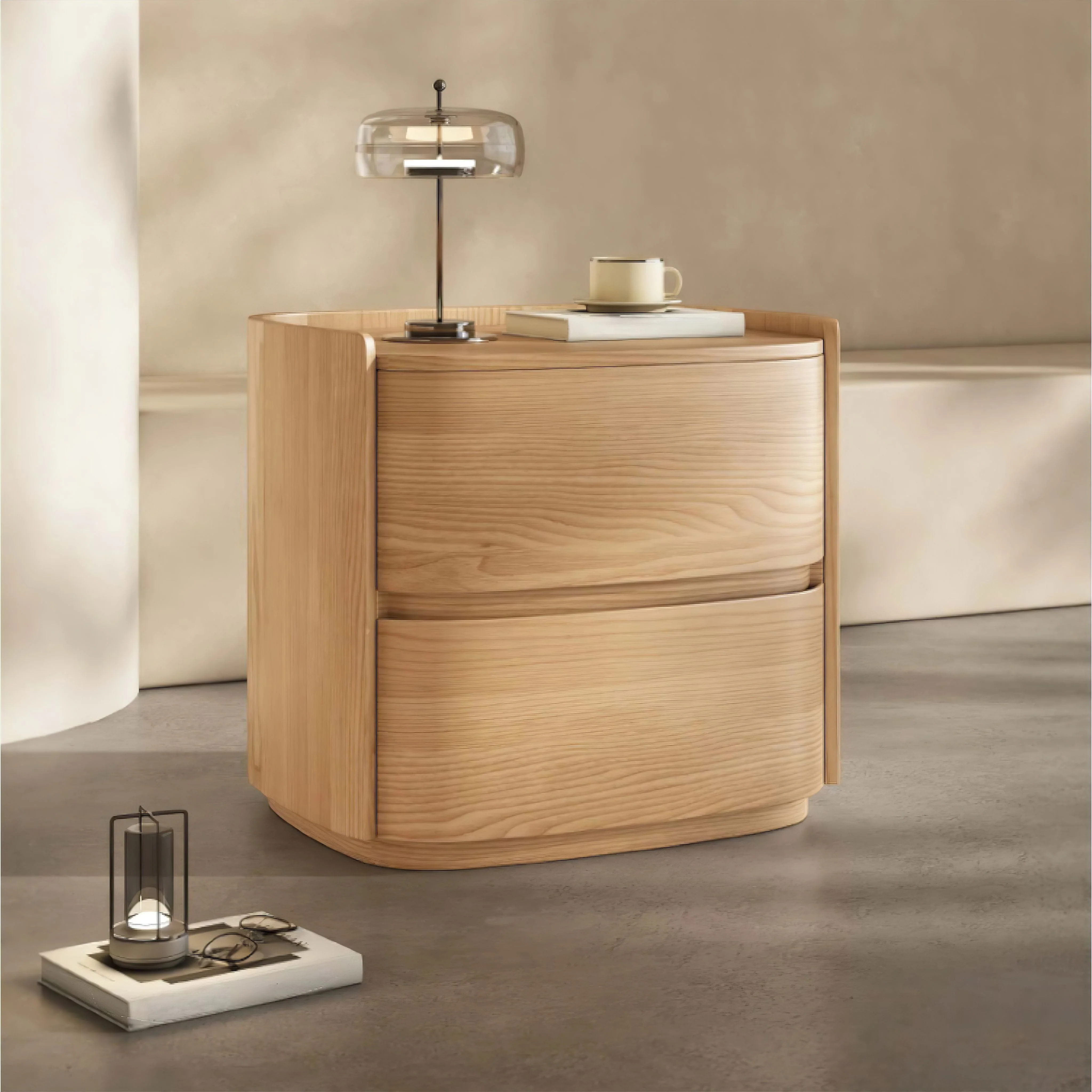 The Nerina Bedside Table is crafted from solid walnut timber, highlighting rich natural grain that adds warmth and depth to the bedroom. Its softly curved form introduces a gentle, organic touch that balances clean-lined modern interiors. Designed for everyday practicality, it features two spacious drawers that offer generous storage for bedside essentials while keeping surfaces uncluttered.
