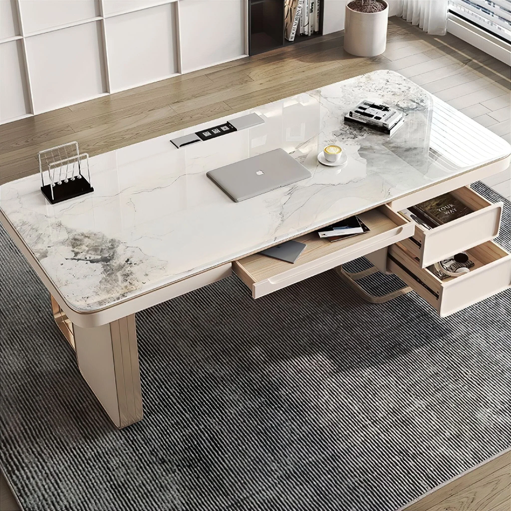 Designed to balance style and performance, the Blandine Desk provides a spacious, sturdy work area that supports productivity and organisation. Upgrade your workspace with a desk that embodies modern luxury, long-lasting quality, and elevated professional design.